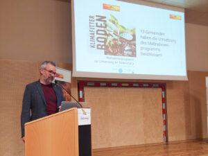 Die Summe an Herausforderungen ist groß und komplex. In einer Matrix skizzierte er die Zusammenhänge zwischen Landwirtschaft, Klimawandel, Biodiversität und Lebensmittelversorgung. Akteure aus den jeweiligen Gruppen beanspruchen den Boden für sich mit nachteiliger Auswirkung für die anderen Bereiche, die Nutzungskonflikte sind vorprogrammiert. Zusammenfassend hielt Hr. Gerzabek fest, dass das Vulkanland recht gut aufgestellt ist. Die Voraussetzungen für eine nachhaltige Bodennutzung sind grundsätzlich gut. Parameter, wie Vielfalt, Kleinstrukturiertheit, Begrünungen, ökologische Strukturen, Dauergrünland, sowie ein sachkundiger Umgang mit Pflanzenschutz sind gute Voraussetzungen für eine langfristig stabile Bodennutzung. Unterstützung findet man durch ressourcenschonenden Umgang mit Bauland (Nachverdichtung, keine Leerstände…), Klimawandelanpassung, Kreislaufwirtschaft, Energieeffizienz, kaskadische Nutzung von Stoffströmen etc. Das sind genau jene Themen, die in der Schwerpunktregion Bioökonomie & Kreislaufwirtschaft aktuell bearbeitet werden.