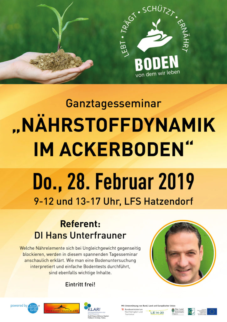 Für einen erfolgreichen Ackerbau ist es wichtig, auch die chemischen Vorgänge im Boden zu kennen. Ökologische Prozesse und Bodenfruchtbarkeit fördern, Gleichgewichte von Nährstoffen herstellen, Stoffe mobilisieren anstatt zu düngen. Welche Nährelemente sich bei Ungleichgewicht gegenseitig blockieren, werden in diesem spannenden Tagesseminar anschaulich erklärt. Wie man eine Bodenuntersuchung interpretiert und einfache Bodentests durchführt, sind ebenfalls wichtige Inhalte.