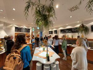Nach der herzlichen Begrüßung und Einführung von Geschäftsführerin Mag.a Michaela Krenn staunten die rund 15 Berufsorientierungslehrerinnen und -lehrer aus den südoststeirischen Schulen nicht schlecht über die “Zuckerl”, die der Radkersburger Hof für Mitarbeiter:innen bietet: von Verpflegung in der Mitarbeiter-Lounge über Gesundheits- und Fitnessangebote bis hin zu Vergünstigungen in regionalen Betrieben und Teamevents, um nur einige Beispiele zu nennen.