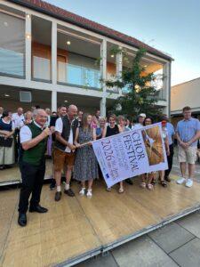 Beim anschließenden offiziellen Festakt wurde die Chorfestival-Fahne an die nächste Festivalgemeinde überreicht: St. Anna am Aigen wird am 13. Juni 2026 zum Gastgeber für das 14. Chorfestival im Steirischen Vulkanland. Bürgermeisterin Andrea Pock reiste mit einer Abordnung an und versprach ein Fest im Zeichen von „kultureller Vielfalt, Naturschönheit, Lebensqualität, Wein & Sein“. Mit dabei: der Weinlandchor und das Ensemble Annapella, die sich auf das Event im nächsten Jahr in ihrer Gemeinde freuen.