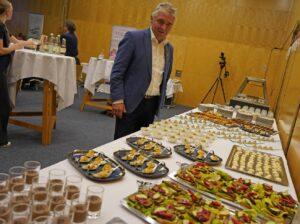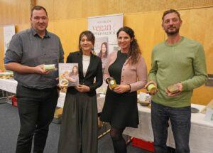 Die Fachschule Schloss Stein sorgte im Vorfeld mit Elisabeth Fischer fürs regionale Buffet. Denise Janisch, Gemüsebau und Soja-Veredlerin aus Ilz, Gerda Sammer-Schmidt, Kochbuchautorin und vegane Köchin aus Auersbach, Christoph Knittelfelder, Tofu-Produzent aus Gnas, Sirkka Hammer von Wiener Miso und südsteirischer Tofu-Produzent Peter Draxler präsentierten im Anschluss an das Symposium Kostproben.