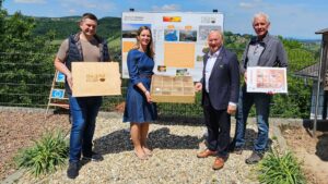 Die feierliche Übergabe fand in der Vinothek Steiermark statt und unterstreicht die besondere Bedeutung des vulkanischen Bodens für die Region und ihre Weinkultur. Der Geologe Ingomar Fritz und Vulkanland-Obmann Josef Ober überreichten die regionale Gesteinskiste, eine Sammlung charakteristischer Gesteine aus dem Steirischen Vulkanland, an Bürgermeisterin Andrea Pock und den Obmann des Weinbauvereins David Ulrich. Die Gesteinskiste beinhaltet auch die vulkanische Vergangenheit der Region und soll künftig Besucher:innen auf anschauliche Weise die geologische Grundlage der regionalen Weinqualität vermitteln.