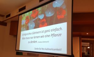 Beim Vortrag von Susanne Pammer über “Jeder hat einen grünen Daumen” am 26. Februar 2019 im Gasthaus Draxler, St. Veit i. d. Südsteiermark, konnten sich knapp 80 TeilnehmerInnen von den Tipps und Tricks zum grünen Daumen überzeugen lassen. Bei einem visuellen Gang durch den ca. 5000 Quadratmeter großen Hanggarten wurden auch Statements HobbygärtnerInnen und Profis, welche von Susanne Pammer persönlich befragt wurden, mit eingebaut.