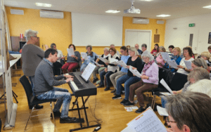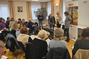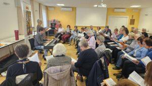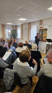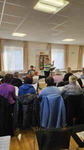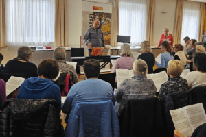 Über 50 singbegeisterte Teilnehmerinnen und Teilnehmer wurden von LAbg. Julia Paar im Gemeindesaal begrüßt und Gerhard Obendrauf (Chorregionsverantwortlicher, wie auch Gernot Ambros, Ursula Krotscheck und Marlene Winkler) startete anschließend gleich mit der Stimm-Aktivierung in den gemeinsamen Sing-Tag.