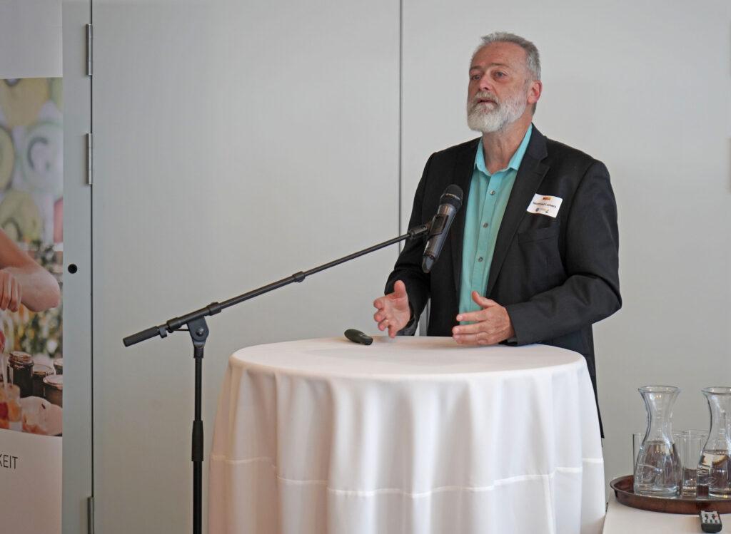 Und genau hier zeigte Reinhard Puntigam, Professor an der Fachhochschule Südwestfalen mit Vulkanland-Wurzeln, dass sich Nachhaltigkeit auch im wirtschaftlichen Erfolg niederschlagen könne. Er hat im Rahmen einer Versuchsreihe in der regionalen Schweinemast gezeigt, dass man bei gleichem Masterfolg den ökologischen Fußabdruck „auf Kinderschuhniveau“ bringen könne. Dabei gälte insbesondere in der Fütterung die Regel „Optimum vor Maximum“. Der für das Projekt regional verantwortliche Wissenschaftler Christian Krotscheck bilanzierte, dass man im Rahmen der Bioökonomie und Kreislaufwirtschaft knapp 100 Prozesse hinsichtlich Nachhaltigkeit auf Herz und Nieren geprüft habe und alleine die konsequente regionale und saisonale Ernährung den Fußabdruck halbiere. Soja könne dabei eine wichtige Rolle spielen. Die wiederum strich Karl Fischer vom Verein Soja aus Österreich heraus.