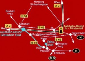 A2 - Abfahrt Gleisdorf Süd - B 68 bis Paurach - in Paurach links abbiegen in Richtung Edelsbach bei Feldbach