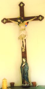 Die Motivation zur Errichtung der Kapelle sowie der Schnitzer des Korpus (aus Holz, 131 cm), der Marienstatue (aus Holz, 64 cm), des hl. Aloisius (aus Holz, 71 cm) und der hl. Barbara (aus Holz, 73 cm) sind nicht bekannt.