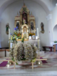 Nachdem Anna Wohlmuth von einer schweren Krankheit geheilt wurde, ließ ihr Mann 1841 eine Kapelle erbauen, die später zur bestehenden Kapelle ausgebaut wurde. Vom alten Kapellenbestand ist der gegeißelte Heiland, wie er im bayerischen Prämonstratenserkloster Steingaden oder in Wies zu sehen ist, erhalten. Die beiden Bilder Jesus am Kreuz und Schmerzhafte Gottesmutter wurden von Luccesi-Palli gespendet. Ein Votivbild berichtet ausführlich von der Kirchengeschichte.(Quelle: Johann Schleich)