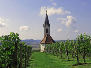Ganz egal, ob man unseren Ort vom Süden, aus dem Saßtal, oder aus dem Westen über den Sonnenberg erreicht, immer fällt der Blick auf die schmucke, weithin sichtbare Schichenaukapelle, die gleich einem Wahrzeichen über dem Weinberg von Nagl-Hiebaum, vlg. Pauln, thront und am Abend beleuchtet wird.