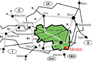 Von Graz kommend (A 9) - Abfahrt Gersdorf - auf der B 69 nach Mureck; Von Wien kommend (A 2) - Abfahrt Ilz/Fürstenfeld -B 65 in Richtung Ilz - auf der B 66 in Richtung Feldbach - Mühldorf bei Feldbach - Bad Gleichenberg - Stainz bei Straden - Mureck