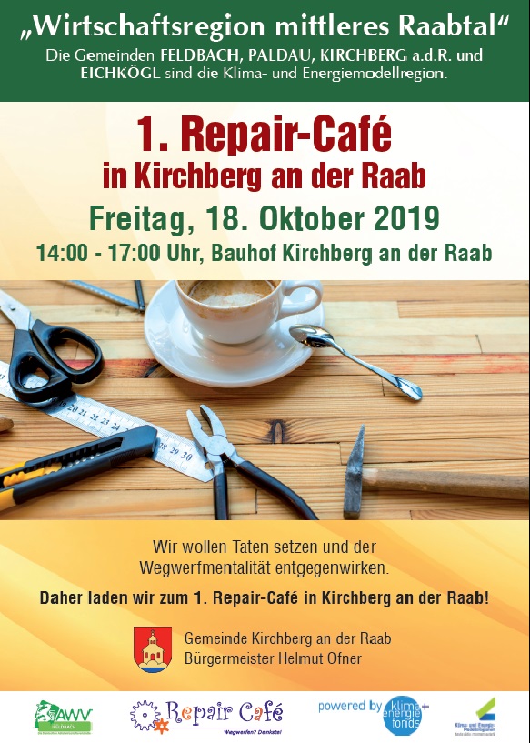 Daher laden wir zum 1. Repair-Cafè in Kirchberg an der Raab!
