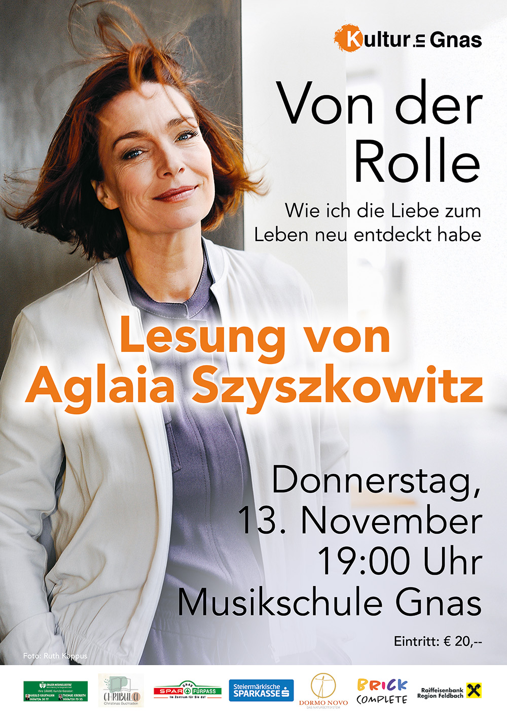 Home | Veranstaltungen | Aglaia Szyszkowitz – Von der Rolle Aglaia Szyszkowitz – Von der Rolle Zurück zur Übersicht Veranstaltung 13.11.2025ab 19:00 Musikschule Gnas Gemeinde Gnas Kultur, Kunst+Kultur+Theater Advent am See Teichfestspiele: ‘F*CKING HOT’ Advent am See Benedikt Mitmannsgruber – Der setsame Fall des Benedikt Mitmannsgruber 60. Weihnachtswunschkonzert der Marktmusikkapelle Gnas