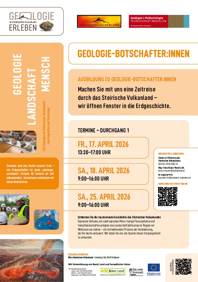 Entdecken Sie die faszinierende Geschichte des Steirischen Vulkanlandes Explosive Vulkane, ein subtropisches Meer, riesige Flusssysteme und Sumpflandschaften prägten das Landschaftsbild unserer Region vor Millionen von Jahren – ein fortwährender Prozess der Veränderung, der bis heute andauert. Wir laden Sie ein, die Spuren dieser Vergangenheit