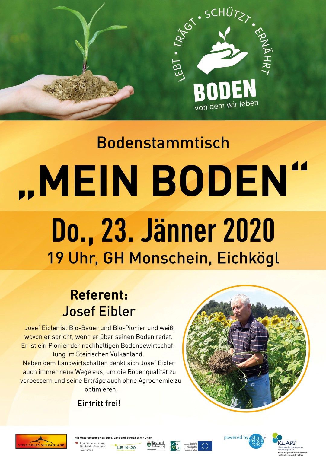 Josef Eibler ist Bio-Bauer und Bio-Pionier und weiß, wovon er spricht, wenn er über seinen Boden redet. Er ist ein Pionier der nachhaltigen Bodenbewirtschaftung im Steirischen Vulkanland. Neben dem Landwirtschaften denkt sich Josef Eibler auch immer neue Wege aus, um die Bodenqualität zu verbessern und seine Erträge auch ohne Agrochemie zu optimieren.