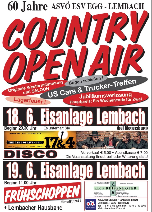 Country-Openair + Frühschoppen mit 60 Jahre ASVÖ ESV Egg Lembach