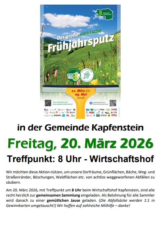 Eine Hilfe wäre es auch, Abfalllagerungen an die Gemeinde Kapfenstein zu melden, um die Räumung zu veranlassen. Danke für eure Mithilfe!