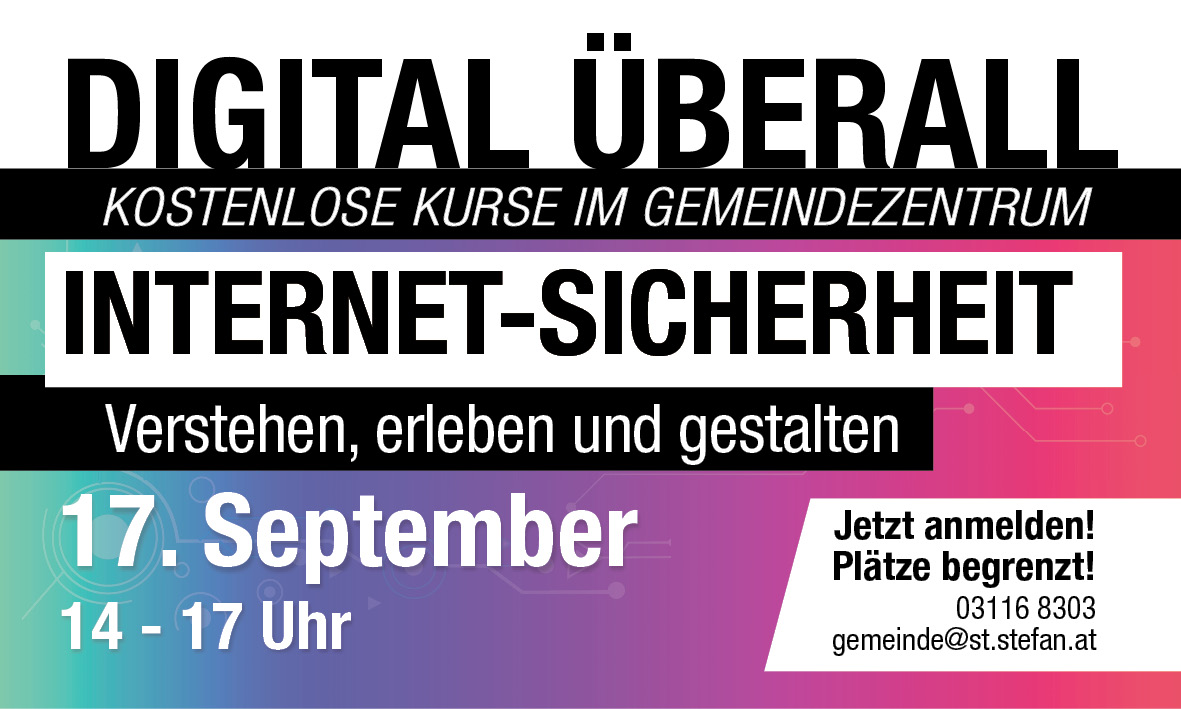 Nutzen Sie die Gelegenheit, sich in entspannter Atmosphäre neues Wissen anzueignen – verständlich, praxisnah und kostenlos! Die Kurse richten sich an alle, die im Alltag sicherer und selbstbewusster mit digitalen Themen umgehen möchten.