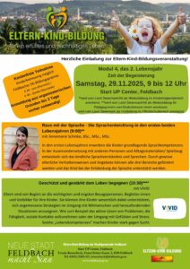 In den ersten Lebensjahren erwerben die Kinder grundlegende Sprachkompetenzen. In der Auseinandersetzung mit anderen Personen und Alltagsmaterialien/ Spielzeug entwickeln sich das kindliche Sprachverständnis und Sprechen. Durch gewisse elterliche Verhaltensweisen und Angebote können alle drei Bereiche gefördert werden und das Kind bei der Entdeckung der Sprache unterstützt werden.