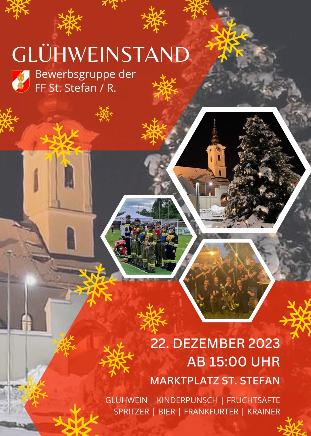 Die Bewerbsgruppe der FF St. Stefan im Rosental lädt herzlich ein, am Glühweinstand gemeinsam die kalte Jahreszeit zu genießen.