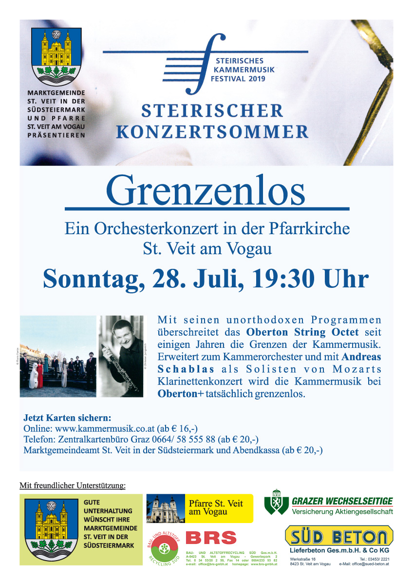 Grenzenlos – Orchesterkonzert im Rahmen des Steirischen Kammermusik Festivals 2019