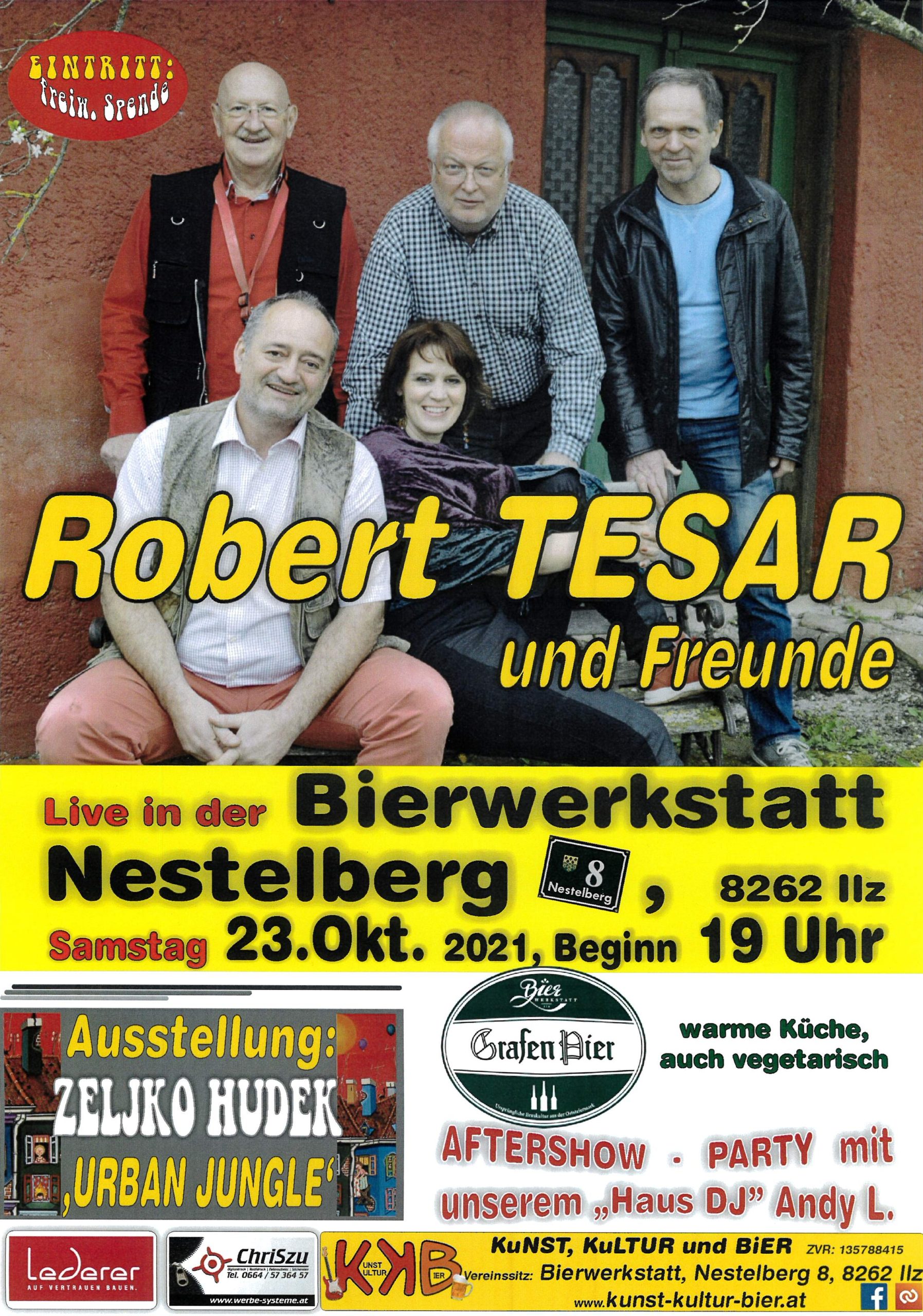 Live-Konzert von Robert Tesar und Freunde in der Bierwerkstatt von Richard Graf. Beginn um 19.00 Uhr.
