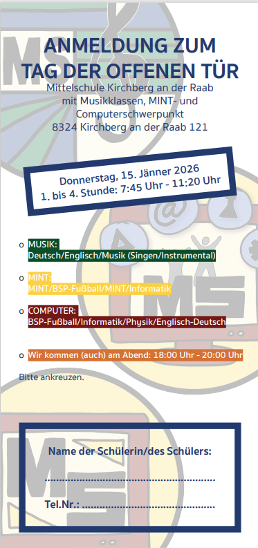 Anmeldung zum Tag der offenen Tür https://www.schulzentrum-kirchberg.at/