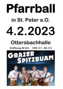 Pfarrball ab 20:00 Uhr in der Ottersbachhalle St. Peter am Ottersbach, mit den "Grazer Spitzbuam",