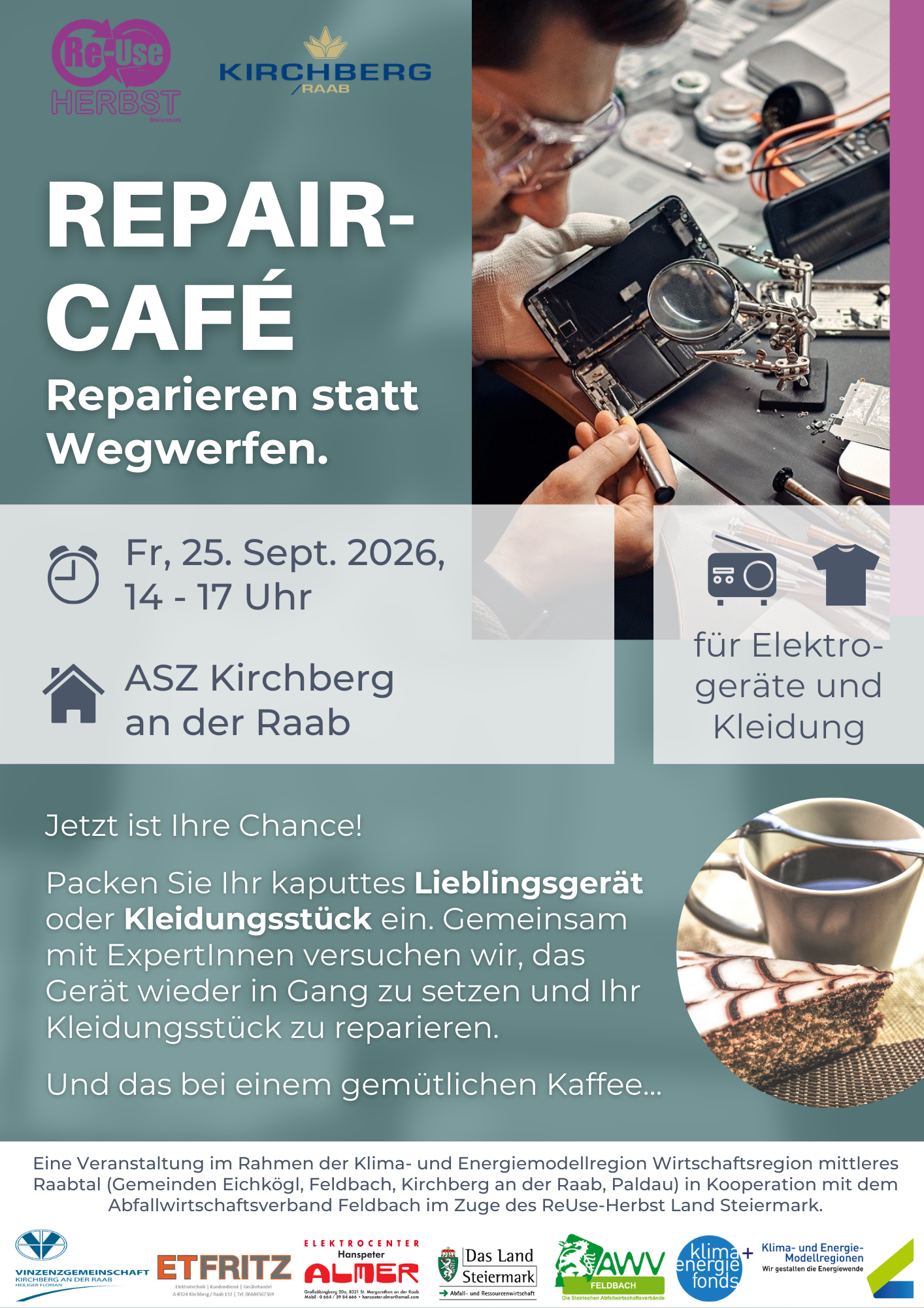 Eine Veranstaltung im Rahmen der Klima- und Energiemodellregion Wirtschaftsregion mittleres Raabtal in Kooperation mit dem Abfallwirtschaftsverband Feldbach im Zuge des ReUse-Herbst Land Steiermark