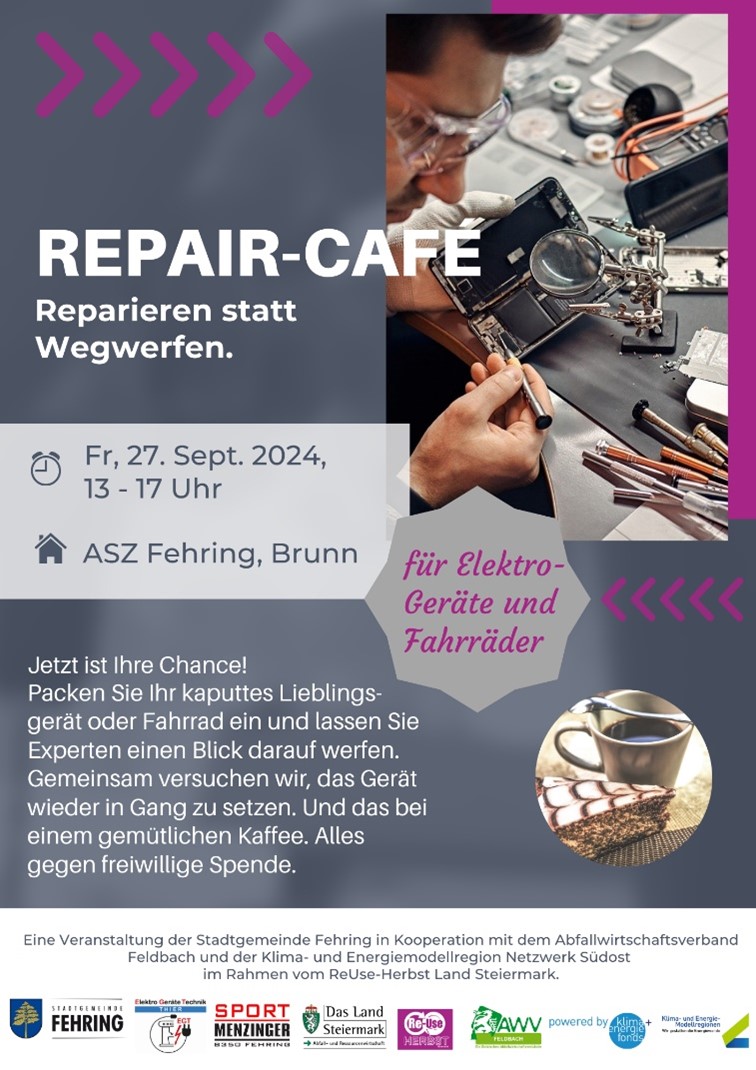 Sie haben ein Lieblingsgerät oder Fahrrad, das schon länger kaputt ist, aber Sie konnten sich noch nicht trennen? Seitdem verstaubt es in einer Ecke. Jetzt ist Ihre Chance! Packen Sie das Gerät oder Rad ein und kommen Sie zum Repair Café Fehring.