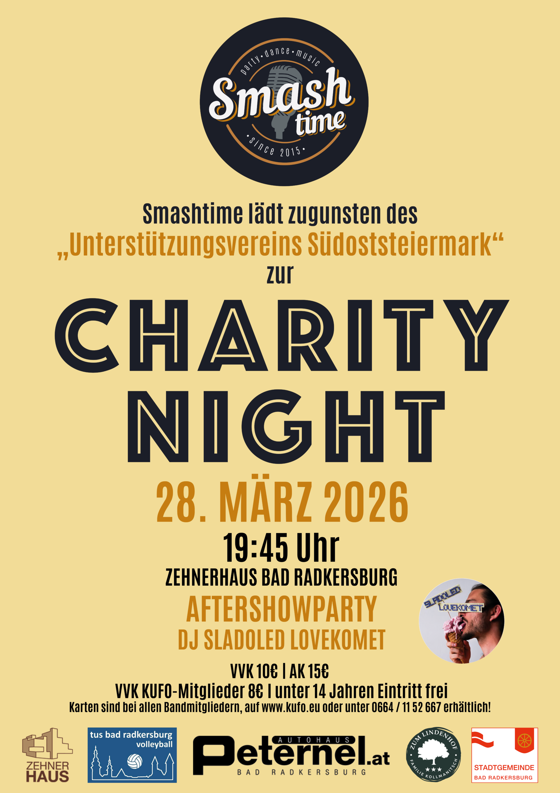 Kartenverkauf wird zur Gänze an den Unterstützungsverein Südoststeiermark gespendet.