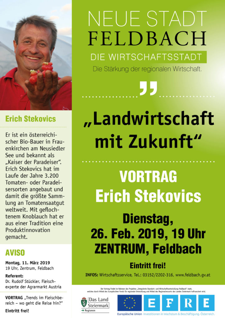 „Landwirtschaft mit Zukunft“ Referent: Erich Stekovics Zentrum, Feldbach, 19 Uhr
