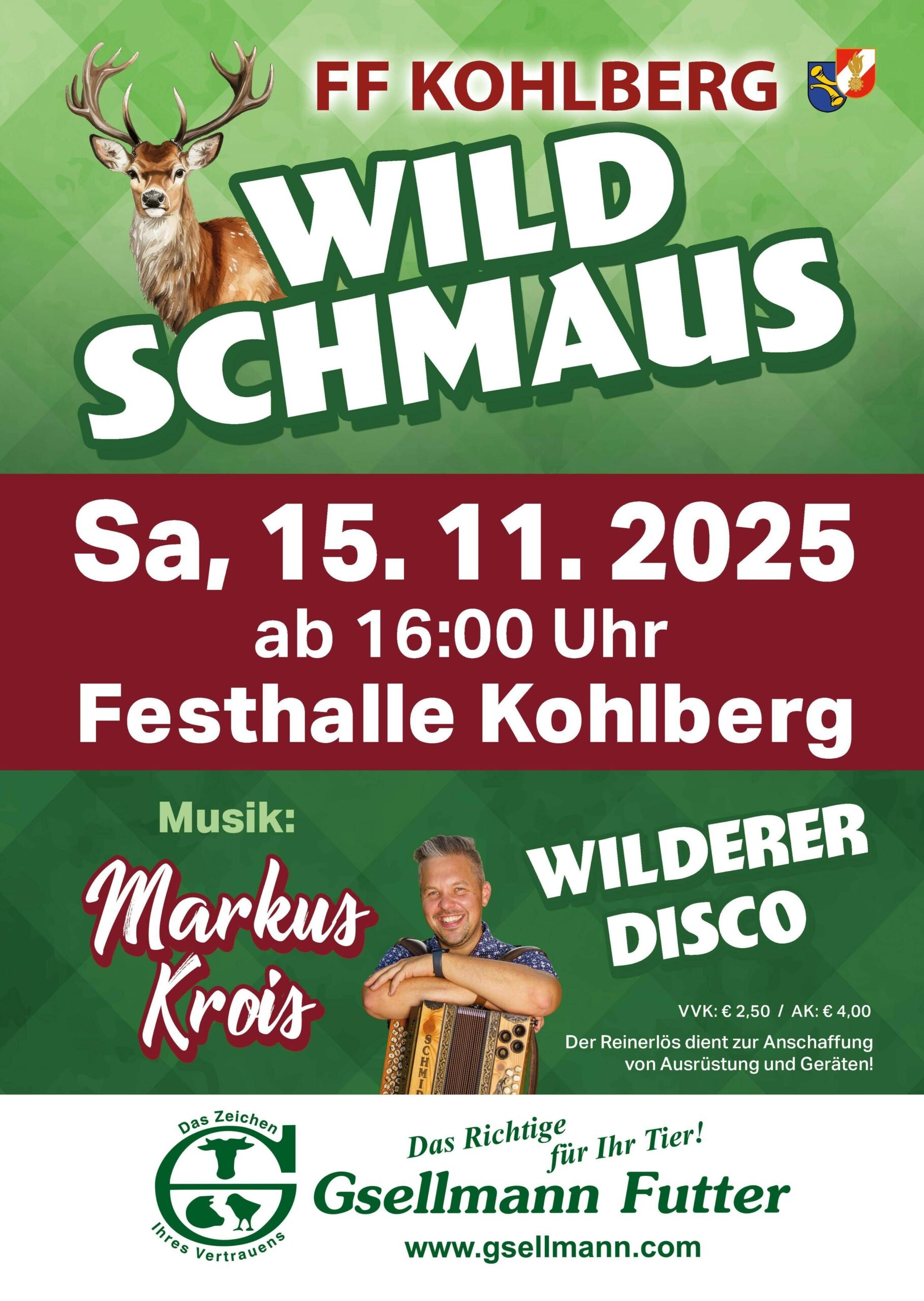 Home | Veranstaltungen | Wild Schmaus der FF Kohlberg Wild Schmaus der FF Kohlberg Zurück zur Übersicht Veranstaltung 15.11.2025ab 16:00 Festhalle Kohlberg Gemeinde Gnas Bilder Feuerwehr, Kulinarischer Herbst, Kulinarium, Tourismus Maierdorfer Advent Advent in der BIM – Ihr Kinderlein kommet! Glühweinstand der FF St. Stefan Stiller Raum in Straden – ARTGenossen Vulkanland Glühweinstand, USC-Jagerberg