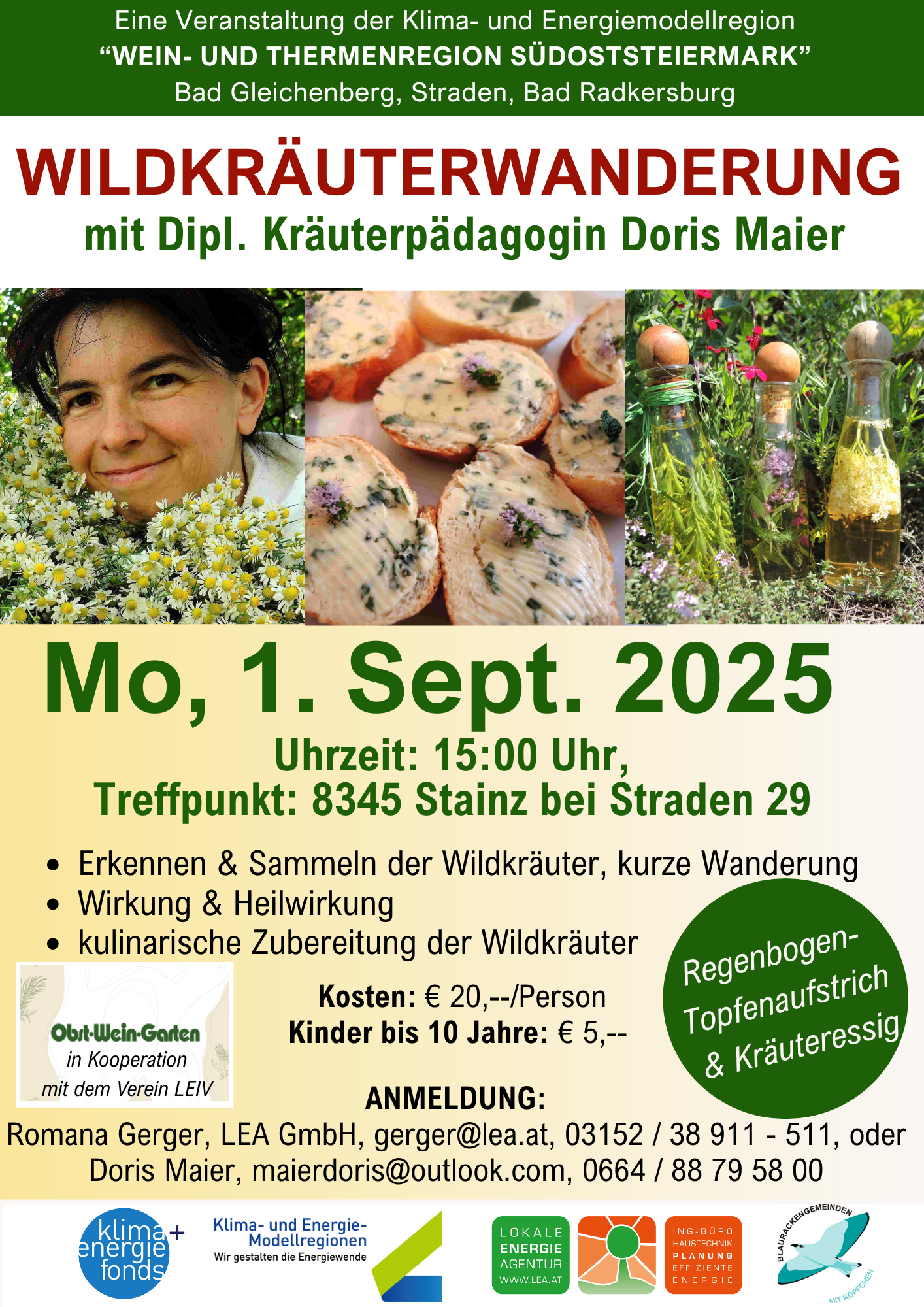 oder bei Doris Maier, Dipl. 0664 / 8879 58 00 oder maierdoris@outlook.com