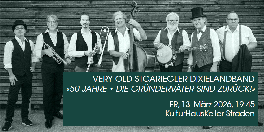 Jetzt kommt die „Very Old Stoariegler Dixielandband“ – die wohl witzigste Jazzband Österreichs – mit Dixieland-Klassikern von Luis Armstrong, Chris Barber, Sidney Bechet oder Luis Prima und Hits wie Hello Dolly, Icecream, Oh When The Saints, Struttin With Some Barbecue, Yes Sir, Honeysuckle Rose, Blue Danube, Oh Sole Mio uvm. auch nach Straden und begeistert und erheitert ihr Publikum wie einst:
