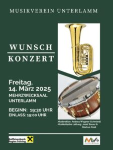 Alljährliches Wunschkonzert mit Konzertstücken von traditionell bis modern. Die BesucherInnen erwartet ein buntes Programm inklusive Auftritt unserer Musikjugend.