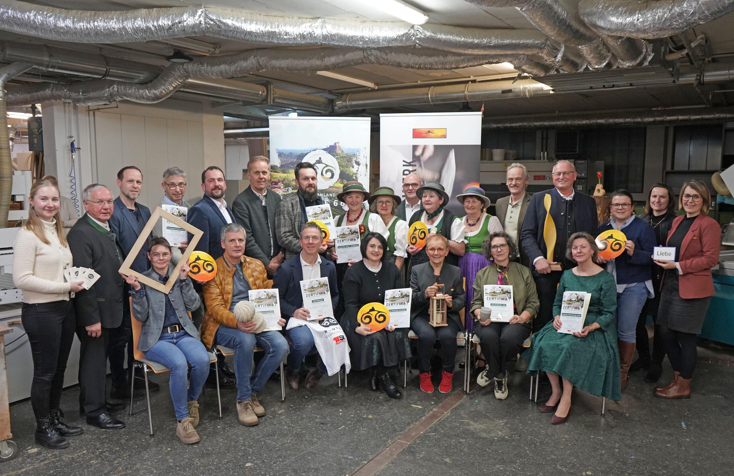 Am 03.02.2026 wurden die ersten elf Handwerksbetriebe offiziell als Vulkanland Route 66 – Erlebnismanufaktur Handwerk zertifiziert. Bei allen ausgezeichneten Betrieben sind künftig Erlebnisführungen und buchbare Angebote möglich: